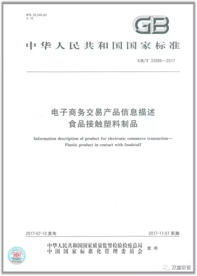 重磅好消息!7月12日, 由“雙童”主導起草的中國《電子商務(wù)交易產(chǎn)品信息描述 食品接觸塑料制品》國家標準正式發(fā)布實(shí)施!這也是“雙童”十多年時(shí)間連續承擔起草的第5件國家級標準!