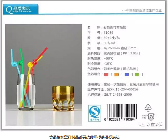 《聚丙烯飲用吸管》 浙江制造團體標準