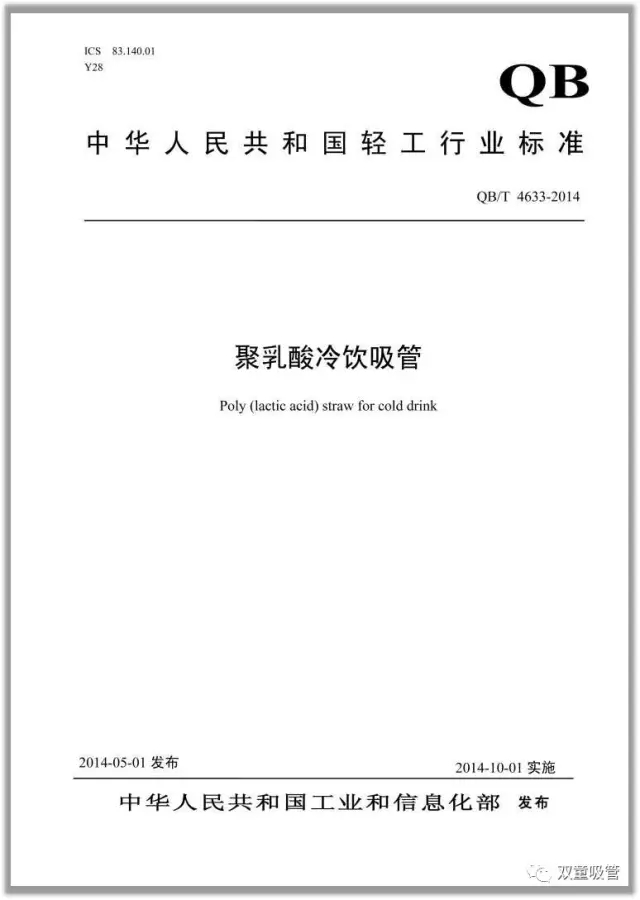 “雙童”主導起草的 QB/T《聚乳酸冷飲吸管》國家行業(yè)標準