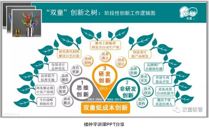 這些年來(lái),樓仲平也一直致力于推動(dòng)“雙童”的創(chuàng )新工作,并研發(fā)了愛(ài)心吸管、風(fēng)車(chē)吸管、哈哈吸管、音樂(lè )吸管等100多種創(chuàng )新產(chǎn)品。目前為止,擁有了100多項專(zhuān)利,掌握了全球吸管行業(yè)近2/3的專(zhuān)利!通過(guò)標準、知識產(chǎn)權、科技的創(chuàng )新,“雙童”也逐步從全球最大”成長(cháng)為“全球最強”!