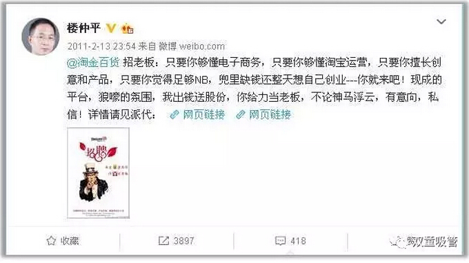 通過(guò)對經(jīng)營(yíng)模式的創(chuàng )新改變,“雙童”創(chuàng )造了差異化亮點(diǎn),引發(fā)了大批媒體的關(guān)注和報道。這讓“雙童”樓仲平體會(huì )到了社會(huì )關(guān)注對“雙童”品牌的助推作用,也引發(fā)了“如何不花一分錢(qián)去引導媒體關(guān)注”的思考。2009年,新浪微博應運而生,深受互聯(lián)網(wǎng)影響的“雙童”樓仲平成為了首批受邀開(kāi)通的博主,并注冊了個(gè)人微博和“雙童”企業(yè)微博。在寫(xiě)微博期間,由于當時(shí)他寫(xiě)的微博更多是企業(yè)管理認知和中小企業(yè)思考的話(huà)題,所以寫(xiě)這些博文時(shí)需要查閱大量的資料和信息,這也促進(jìn)了樓仲平更快的提升。同時(shí),他寫(xiě)的微博也得到了社會(huì )各界的極大關(guān)注,乃至于一年多時(shí)間寫(xiě)到了當時(shí)金華地區微博流量最大的民營(yíng)企業(yè)主之一。