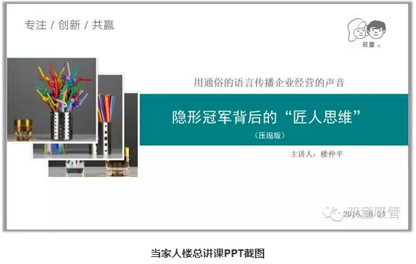 樓仲平:我堅信一個(gè)國家的持久繁榮取決于中小企業(yè)的成功,而不是大公司,特別是在人口眾多的中國。如果只指望大公司,必然是不夠的。而中小企業(yè)的成功取決于其對業(yè)務(wù)的專(zhuān)注程度。不能過(guò)度多元化。你需要集中于某一個(gè)行業(yè)。如果你能做精,那么將能長(cháng)久地立于不敗之地。