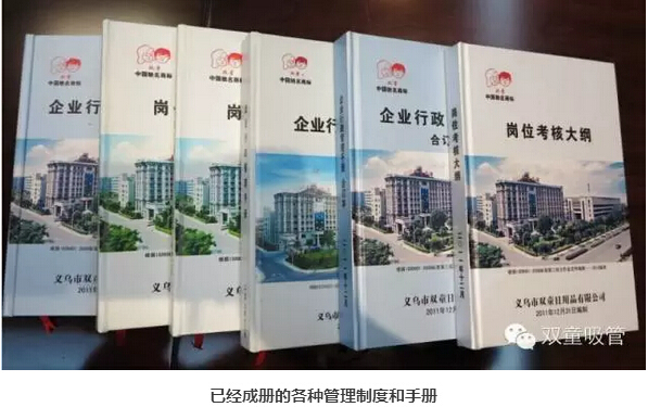 精細化管理也滲透在“雙童”的各個(gè)環(huán)節。樓仲平格外注重企業(yè)文化對員工素養的提升。在“雙童”,每周雷打不動(dòng)都有兩期全員學(xué)習大會(huì );各部門(mén)還有自己的小課,即使是保潔阿姨、門(mén)衛,每周都要求學(xué)滿(mǎn)10小時(shí)。此外,雙童還擁有完整的制度流程,已經(jīng)積累形成了2000多頁(yè)標準化制度文件,其中管理衛生的文件就涉及260多頁(yè)。