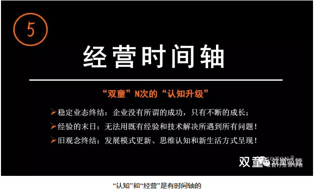 樓仲平也用“雙童”的發(fā)展史告訴大家經(jīng)營(yíng)也是有時(shí)間軸的,會(huì )遇到各種瓶頸和每個(gè)階段的“天花板”。企業(yè)沒(méi)有所謂的成功,只有不斷的成長(cháng),我們無(wú)法用既有經(jīng)驗和技術(shù)解決所遇到所有問(wèn)題!