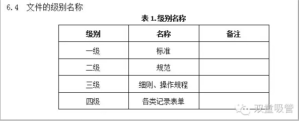 第三層次文件:管理細則、操作規程、技術(shù)標準等作為各部門(mén)運行管理活動(dòng)的常用實(shí)施細則:包括管理標準、操作流程、技術(shù)標準(國家標準、行業(yè)標準、企業(yè)標準及作業(yè)指導書(shū))等;
