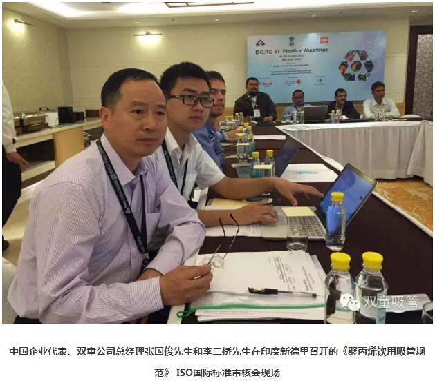 2008年7月,“雙童”在取得國家標準編制起草任務(wù)的前提下,及時(shí)向瑞士ISO標準化管理機構申請了《聚丙烯飲用吸管規范》國際標準的起草制訂工作。通過(guò)四年時(shí)間的努力付出,瑞士ISO標準化機構于2012年6月4日對《聚丙烯飲用吸管規范》國際標準的起草編制工作展開(kāi)投票表決,來(lái)自全球124個(gè)國家和地區的標準化機構委員參與了表決,并通過(guò)了以中國、泰國、瑞典、法國、南非五國組成的《聚丙烯飲用吸管規范》國際標準起草委員會(huì ),“雙童”作為制造企業(yè)被推舉為起草主席國。