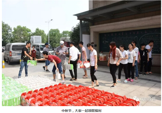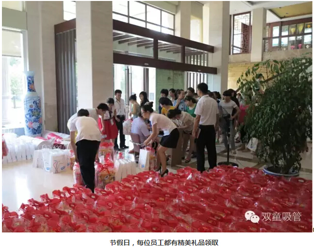 節假日當然也不能錯過(guò)!三八婦女節、端午節、中秋節、春節……每逢節假日,也是“雙童”發(fā)放福利的最佳日子了!瞧!員工們拿著(zhù)禮品滿(mǎn)臉笑容的樣子,也是員工們幸福的體現!