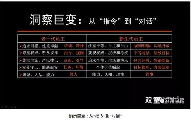 洞察巨變,從“指令”到“對話(huà)”:樓仲平通過(guò)總經(jīng)理李二橋以及吸管妞周上的案例分享了新時(shí)代背景下雇傭關(guān)系已然改變。