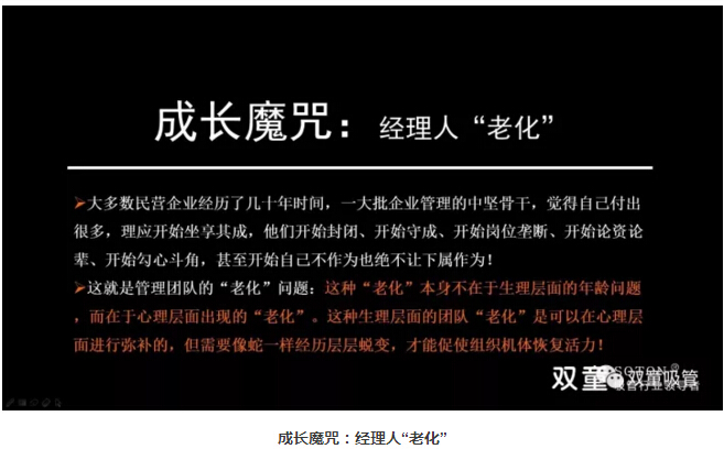 成長(cháng)魔咒,經(jīng)理人老化:接下來(lái),樓仲平也以“雙童”為案例,來(lái)驗證雇傭關(guān)系的轉變??陀^(guān)上每家企業(yè)的發(fā)展都存在著(zhù)成長(cháng)魔咒,大多數民營(yíng)企業(yè)在初期時(shí)組織關(guān)系十分簡(jiǎn)單。但在企業(yè)規范之后,組織管理的方式在不斷改變。