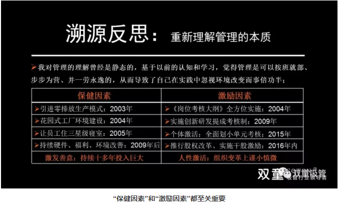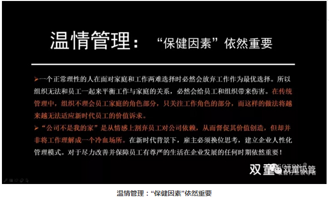 但新時(shí)代背景下,僅有保健因素沒(méi)有激勵因素是無(wú)法打動(dòng)員工內心的。組織不能僅僅體現溫情,組織管理者應授權徹底,激發(fā)和釋放人本身固有的潛能,從而充分發(fā)揮員工的價(jià)值創(chuàng )造!