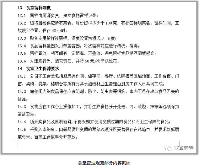 食堂管理規范部分內容截圖