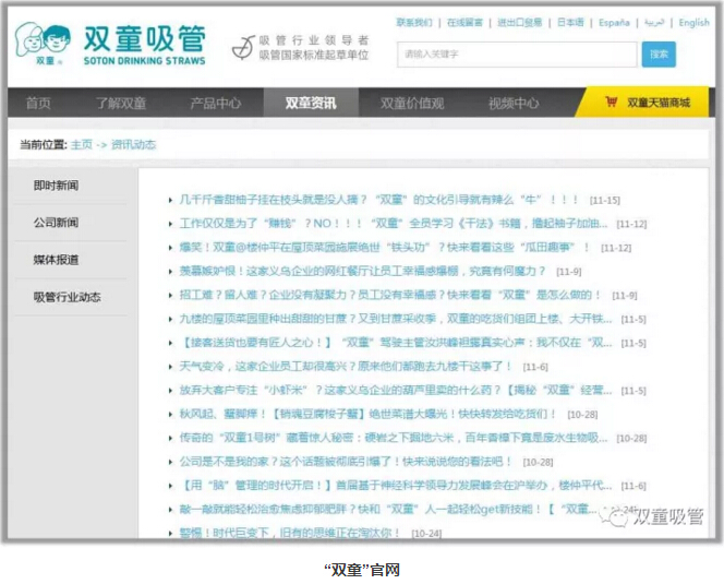 如今,“雙童”專(zhuān)門(mén)設置有5人編制的文宣部門(mén),負責運營(yíng)微博、微信、官方網(wǎng)站等十幾個(gè)自媒體應用平臺,整體流量和社會(huì )關(guān)注度位于中國制造業(yè)前列!