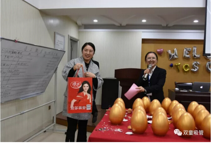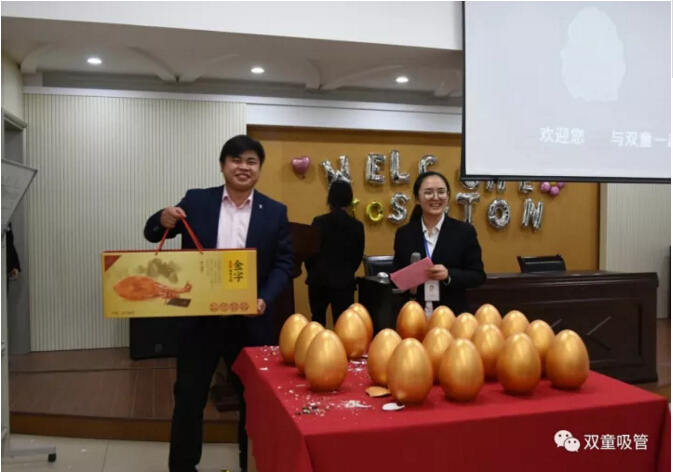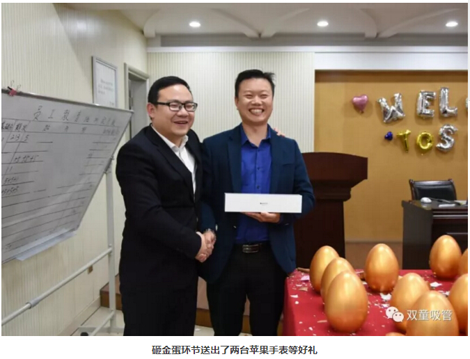 接下來(lái),我們也舉辦了“砸金蛋送好禮”活動(dòng)!隨著(zhù)一個(gè)個(gè)金蛋被砸開(kāi),各種好禮也隨著(zhù)禮花“破殼而出”!蘋(píng)果手表,金華火腿禮盒,浪莎襪禮盒…… 在拿到一件件豐厚禮品后大家笑得都快合不攏嘴了!