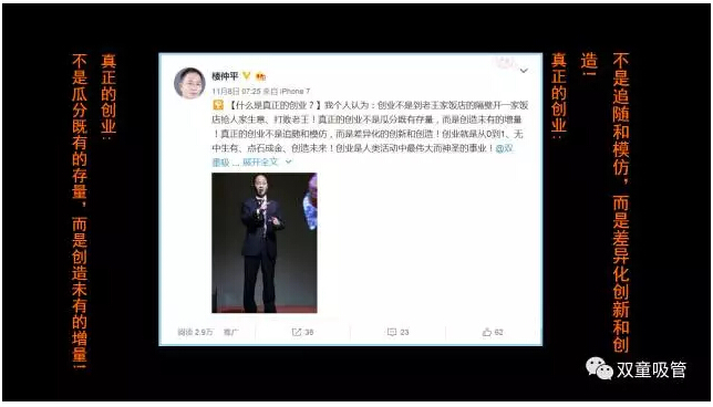 今天,吸管妞就通過(guò)幾個(gè)關(guān)鍵詞和大家分享樓仲平影響創(chuàng )業(yè)者們的部分課件內容吧!