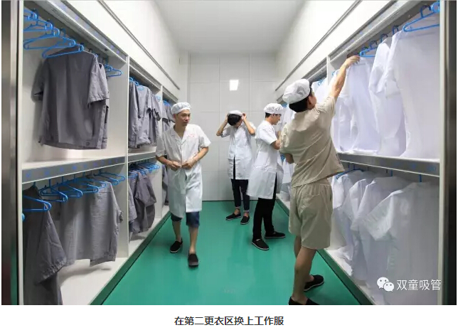 在“雙童”,每位員工在進(jìn)入車(chē)間前,都要按照規范進(jìn)行消毒防護措施,過(guò)五道門(mén)六道關(guān)卡才能進(jìn)入車(chē)間工作: