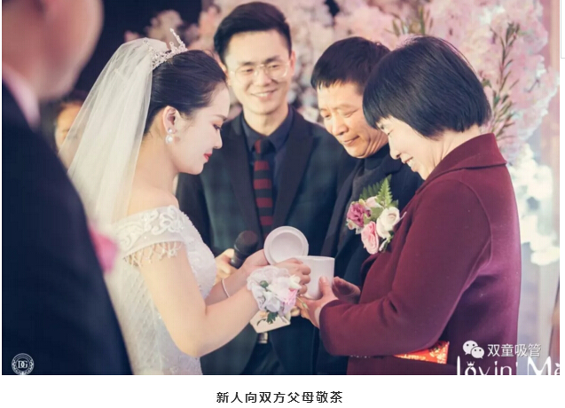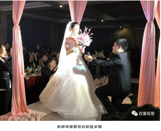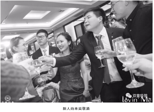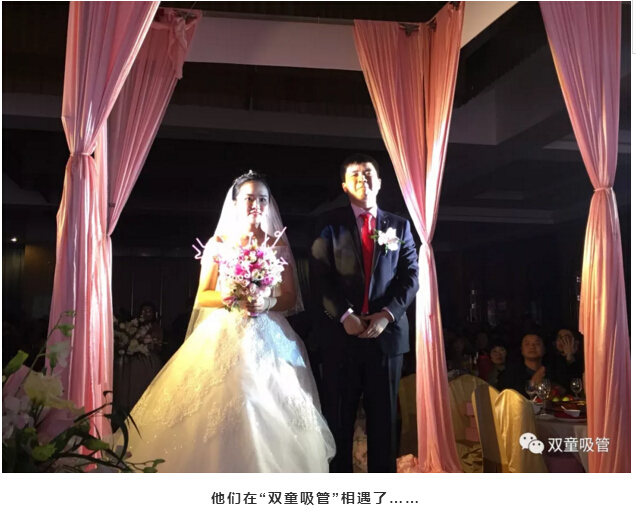 婚禮現場(chǎng)的亭子代表著(zhù)新人的工作單位——“雙童吸管”
