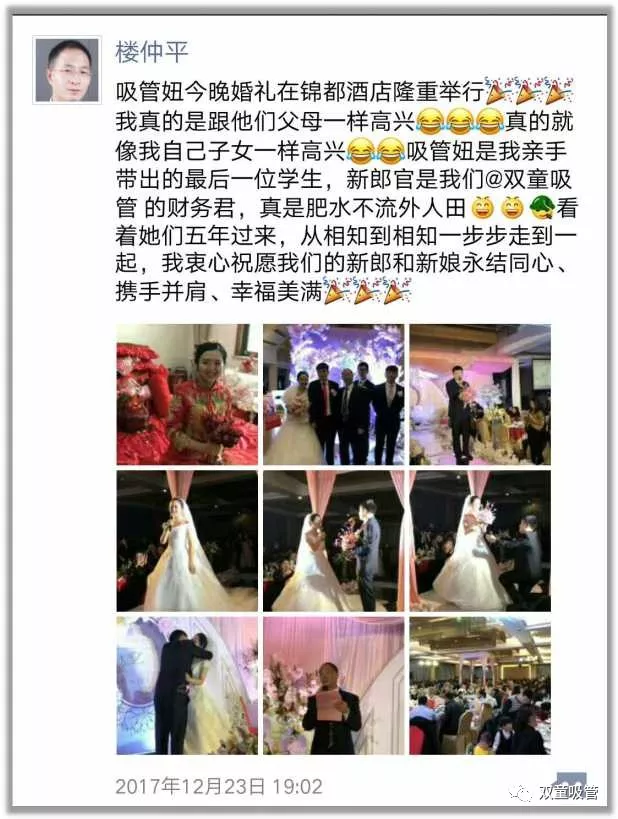 婚禮的現場(chǎng)來(lái)了一位特殊的客人,他是這對新人的證婚人,他是雙童吸管當家人樓仲平。