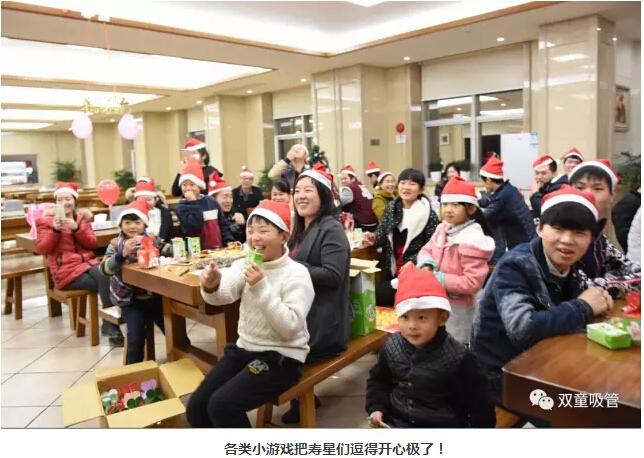 除了圣誕老人來(lái)助陣外,游戲也是圣誕晚會(huì )必不可少的項目。撕名牌,掀帽子,“請喝茶”、“蘿卜蹲”……各類(lèi)小游戲也把壽星們逗笑得前仰后合,晚會(huì )氣氛一度達到高潮!