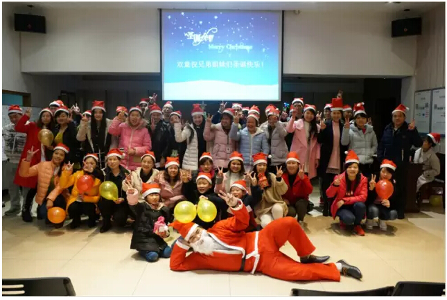 既然是圣誕party,圣誕老人自然必不可少!瞧!員工們、孩子們看到“圣誕老人”纏著(zhù)他不肯放,場(chǎng)面熱鬧極了!