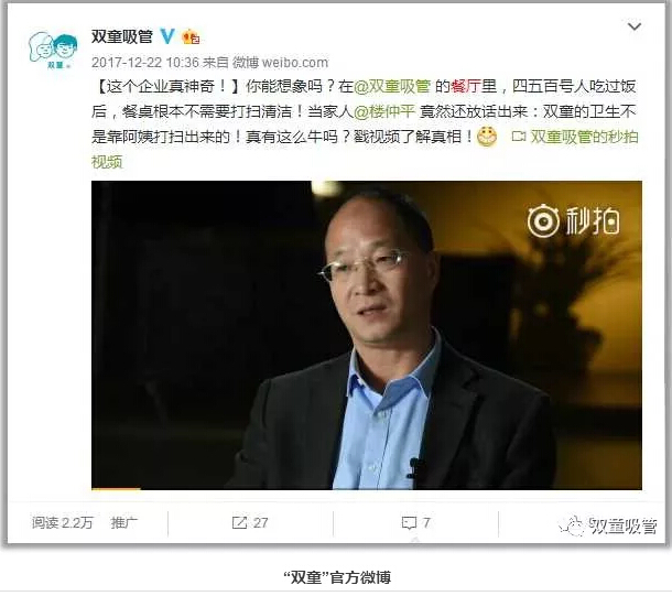 下面,吸管妞就借“雙童”樓仲平的一段采訪(fǎng)小視頻,揭秘“雙童”為什么能夠搞好衛生工作的真相!
