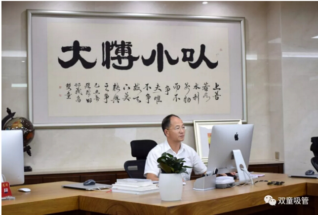 很多來(lái)“雙童”參觀(guān)的客人都會(huì )覺(jué)得疑惑,為什么在“雙童”最顯眼的行政大廳,會(huì )有一面“成就另一種高度”的文化墻?為什么參觀(guān)“雙童”的客人都要在此合影?為什么在“雙童”樓仲平的辦公桌后,一直掛著(zhù)一幅“以小博大”書(shū)法作品?這兩句話(huà)究竟有何意涵?對“雙童”又有著(zhù)什么樣的意義呢?