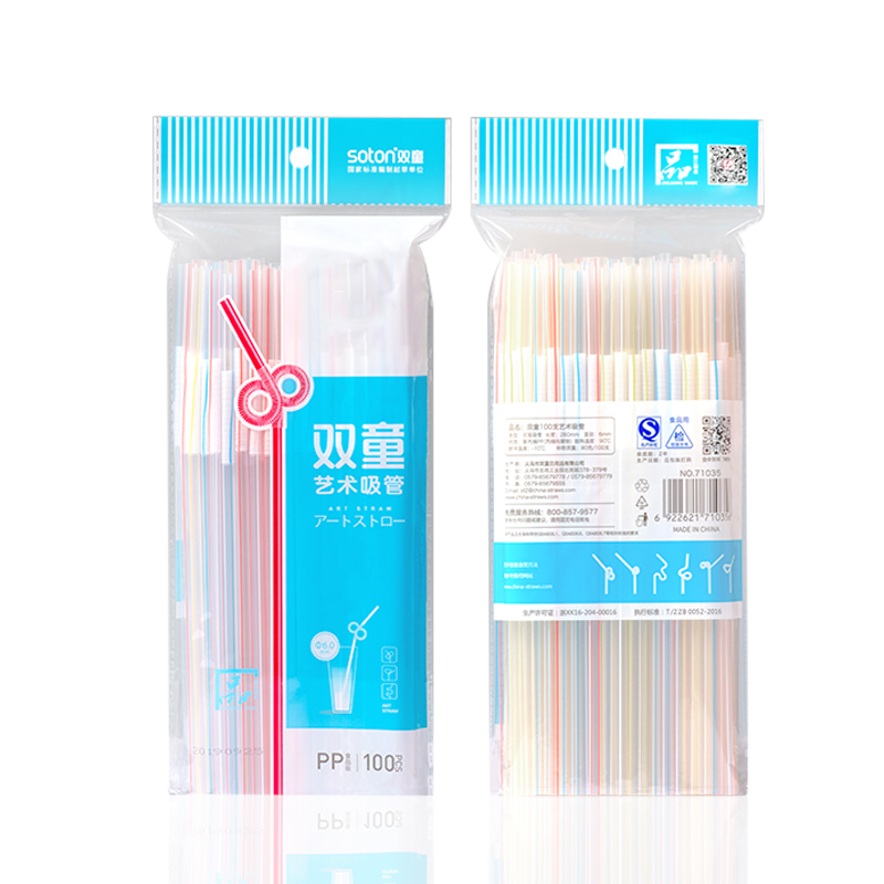 71035雙童100支透明彩條色混裝藝術(shù)吸管