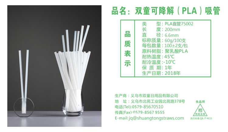 雙童PLA可降解環(huán)保吸管 一次性可樂(lè )冷飲本色直管